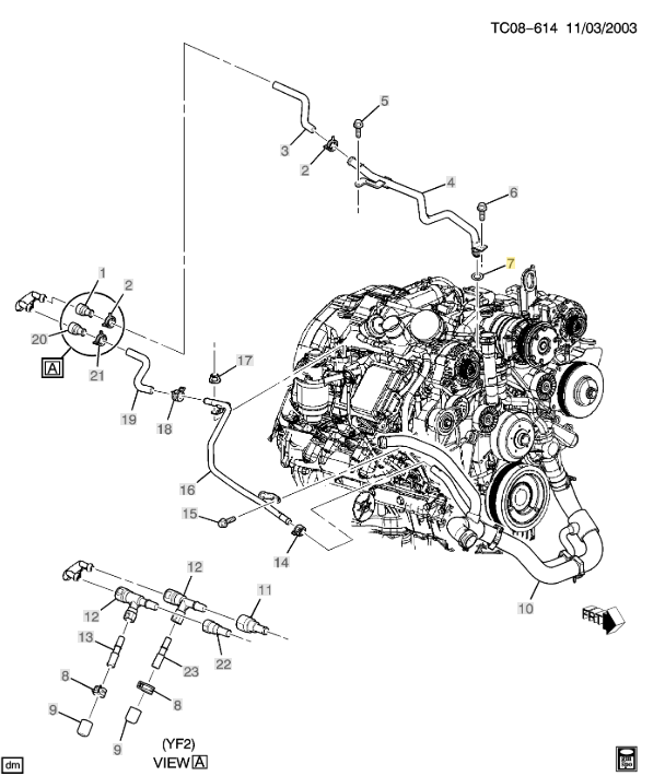 This Merchant Automotive Thermostat Lid Coolant Heater Outlet Pipe O-Ring for 2001-2007 6.6L Duramax engines is an OEM replacement that maintains factory fit and performance. Each component is constructed from quality materials to give you durability and long-lasting performance. This Cummins product is an OEM replacement and when used, allows your engine to maintain factory standards. Callout 7 in above picture.